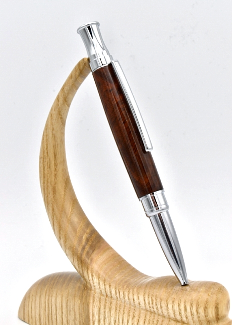 With its mechanism mounted in its finial, and a narrow tube to allow plenty of meat on the finished pen, the Etesia is a classically designed and well balanced pen kit which offers pen makers versatility, both in the finished shape of the turning and in the ability to cast tube-in blanks which feature more bulky elements such a watch parts and other decorative items that require a bit more space.